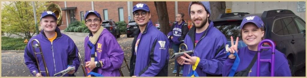We’re not just remembering the good old days — we’re building what’s next. From the stadium to the community, Husky alumni keep the music alive. Together, we celebrate tradition, reconnect across generations, and raise scholarship support for today’s Varsity Band students. Welcome to the Husky Marching Band Alumni Association!